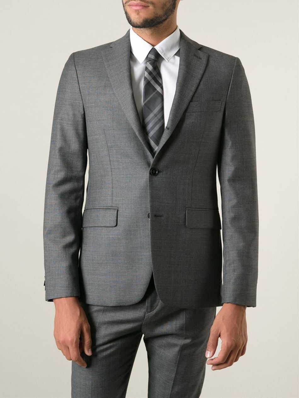 Ещё одна модель галстука от Burberry с белой рубашкой и костюмом![]()