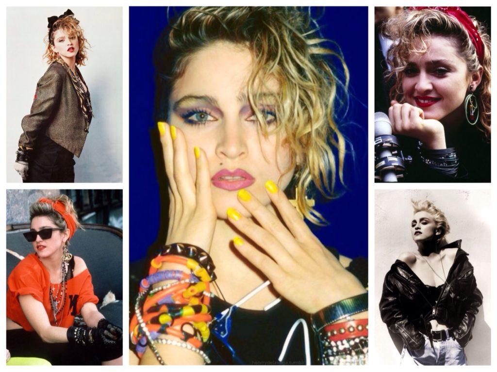 Молодые женщины восьмидесятых ориентировались на смелых поп-див, демонстрирующих сексуальную независимость. На сцене блистала Мадонна, выходящая на выступления в излишне откровенных нарядах. Корсеты, чулки, кожаные мини-юбки и шорты, рваные колготки одновременно шокировали и вызывали восхищение.