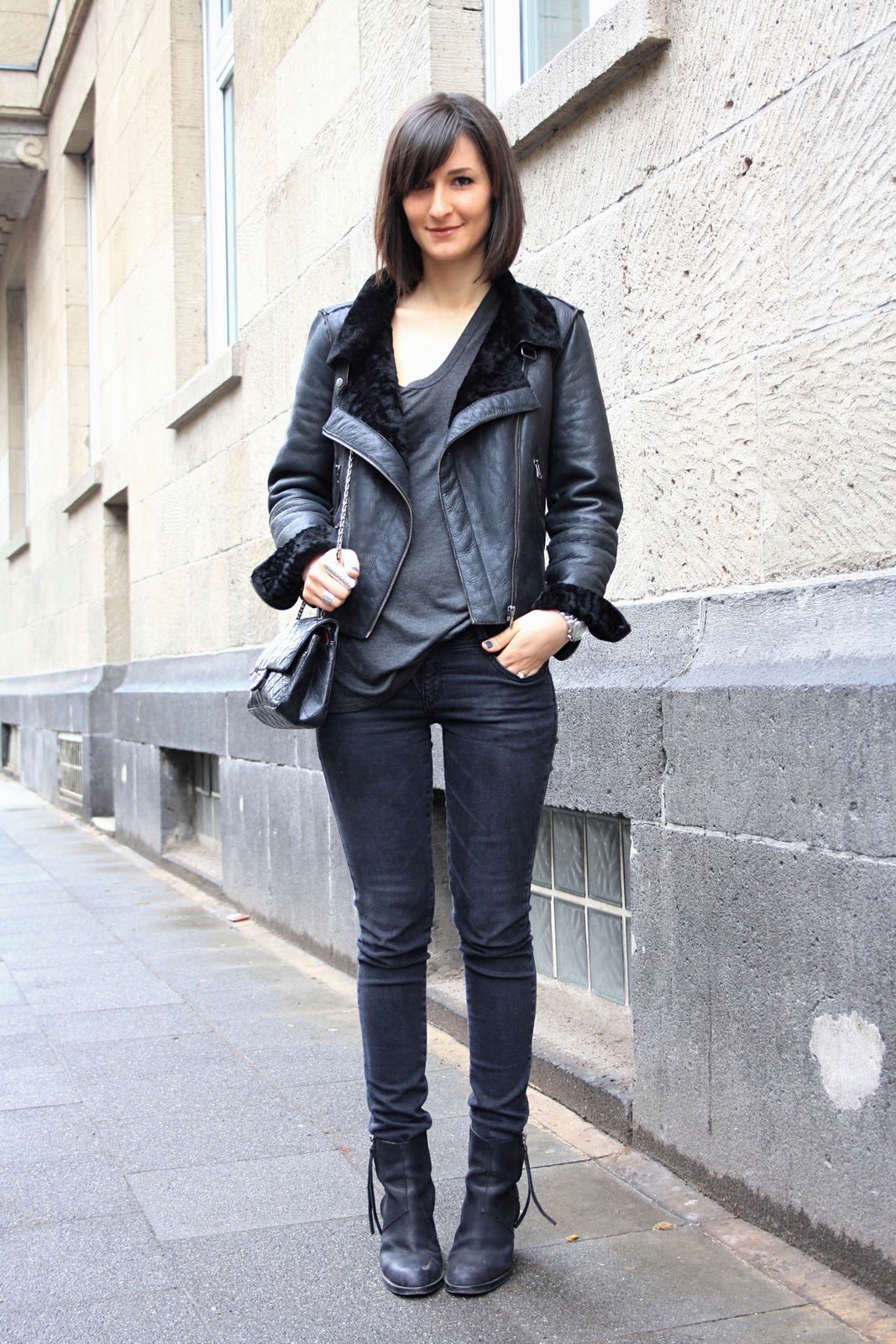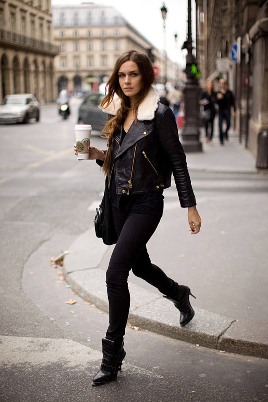 - На свидание. Для свидания отлично подойдет укороченная джинсовая или кожаная косуха, черное кружевное платье, ботильоны или ботфорты. Кожаные шорты или твидовая мини-юбка с высокой посадкой также хорошо впишутся в этот ансамбль.