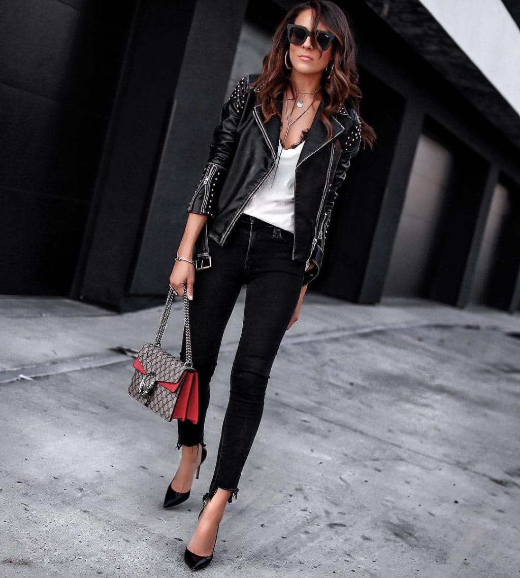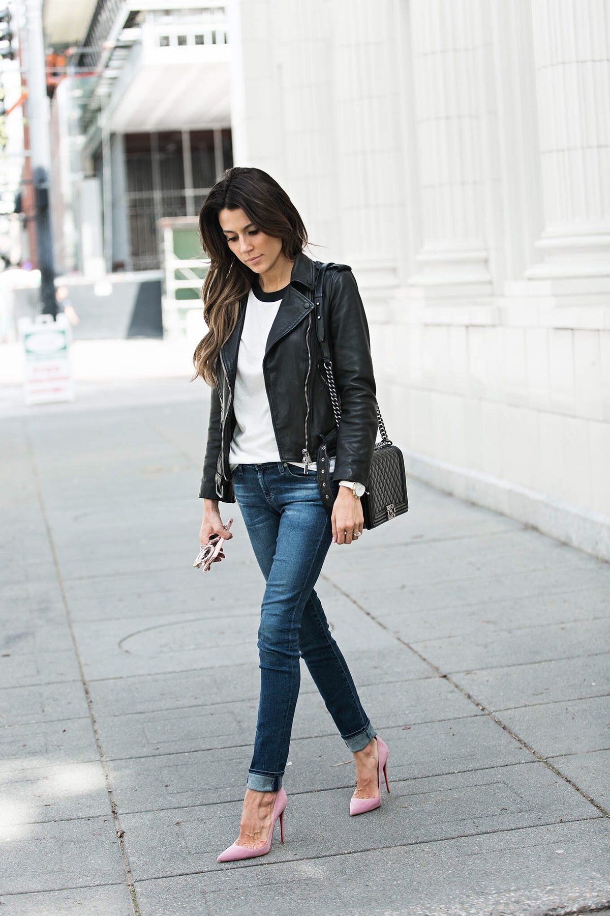 Однако чаще всего косуху сочетают с джинсами, джемперами, футболками. Такие комбинации станут прекрасной основой повседневных образов. При этом не рекомендуется сочетать куртку с казаками или берцами – образ получится перегруженным и будет выглядеть нелепо.