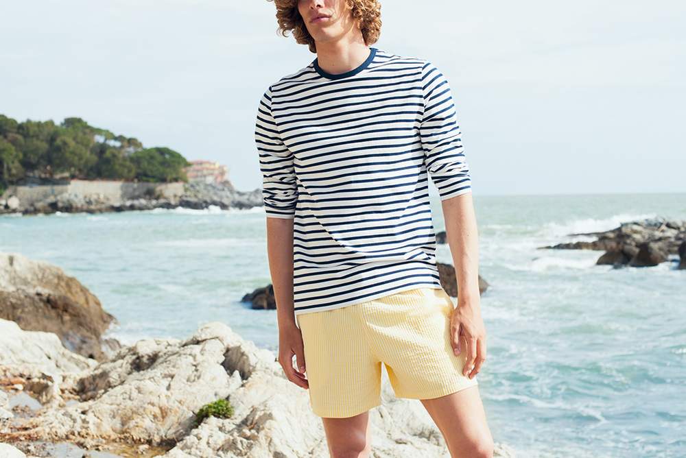 Ты в отпуске, поэтому пришло время отбросить рабочий темно-синий цвет, черный и корпоративный серый для чего-то более предприимчивого. Плюс, как мы уже отмечали, в этом сезоне модными являются размытые и выцветшие цвета. Итак, почему бы не попробовать эти шорты от специалиста по роскошной ткани Loro Piana в теплом, банановом желтом оттенке, особенно когда они сочетаются с полосатой футболкой. Как и всё, что связано с этим вековым итальянским брендом, стиль находится в деталях: эти шорты красиво пошитые, отлично сидят и их длина к середине бедра. Возьми их с собой, когда ты будешь с золотым загаром в середине отдыха.