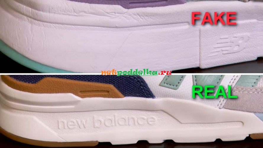 Компания New Balance никогда не использует поверхностную низкосортную покраску подошвы. Поэтому любое неровное наложение цвета − признак подделки.
