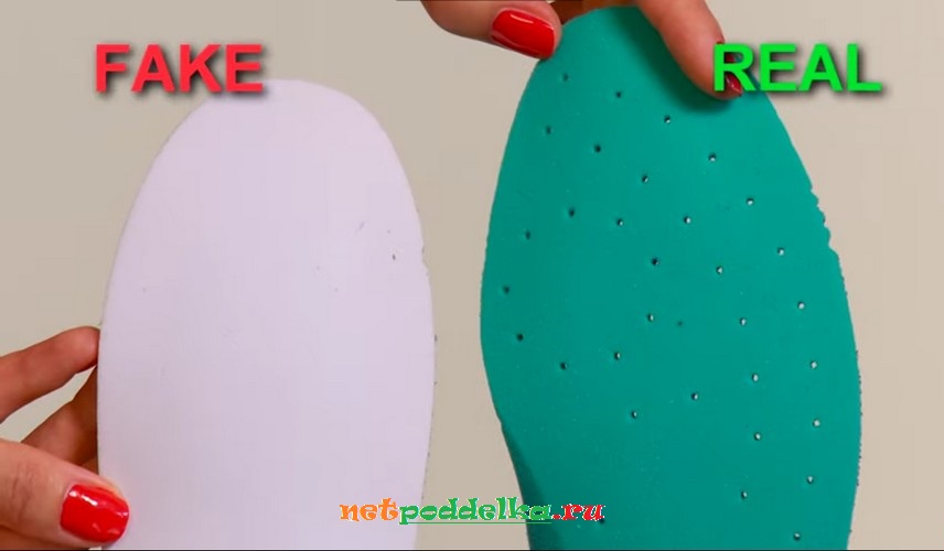 Стелька оригинальных кроссовок имеет перфорацию. Она подходит по форме и обладает достаточной упругостью.