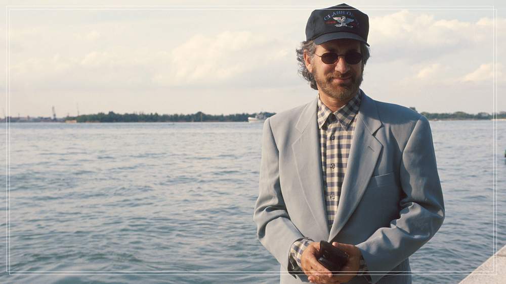Здесь на изображении он в Венеции в 1980 году, режиссер объединяет оттенки голубого цвета блейзера, кепки и клетчатой рубашки с легендарной лагуной позади него, с сильной структурой, которая почти тянется через горизонт.