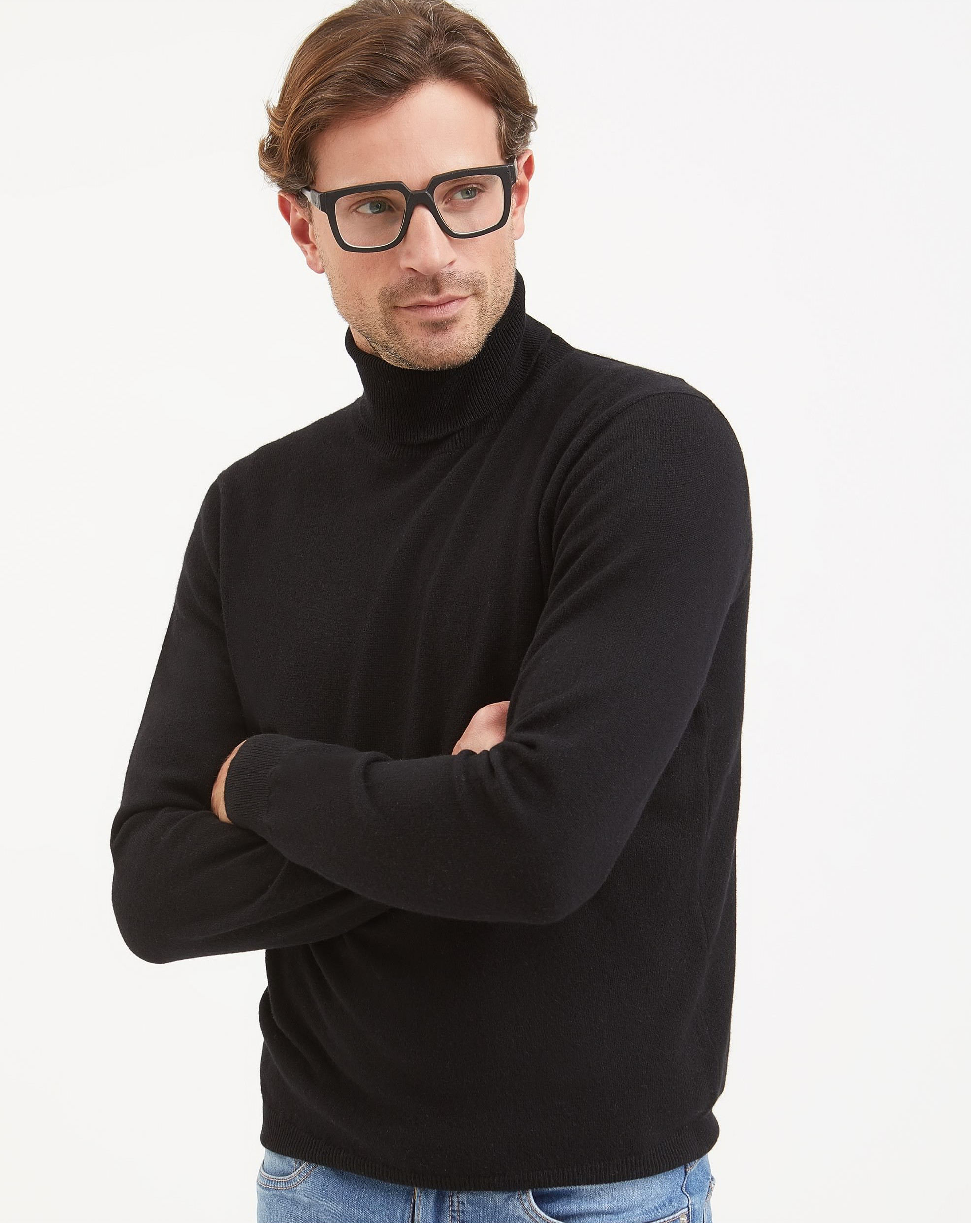 Гладкая черная в меру облегающая водолазка – самый универсальный вариант базовой модели