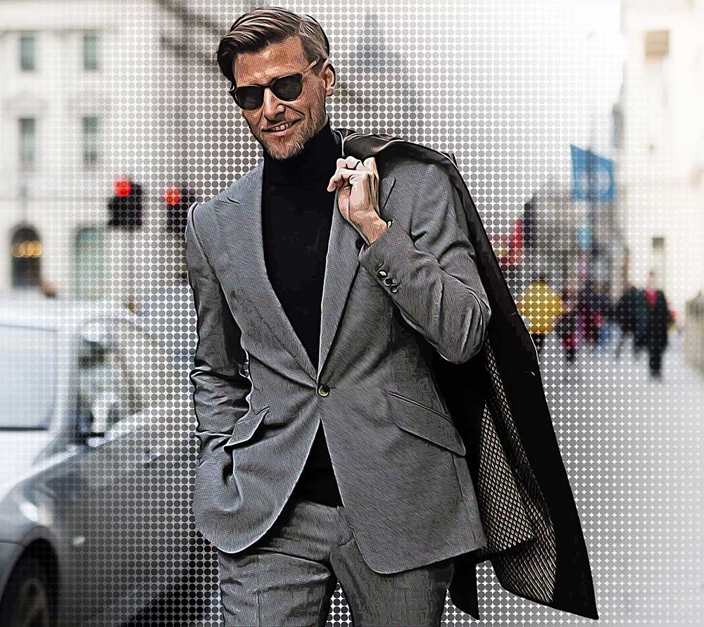 Если вы надеваете водолазку под классический пиджак, она должна быть однотонной, гладкой и достаточно тонкой: допустим различный состав ткани, в том числе шерсть и кашемир, но изделие не должно выглядеть массивным и похожим на отдельный свитер. По цветовой гамме рекомендуется подбирать водолазку на пару тонов светлее пиджака. Исключение составляет черный цвет: его можно носить с серым костюмом.