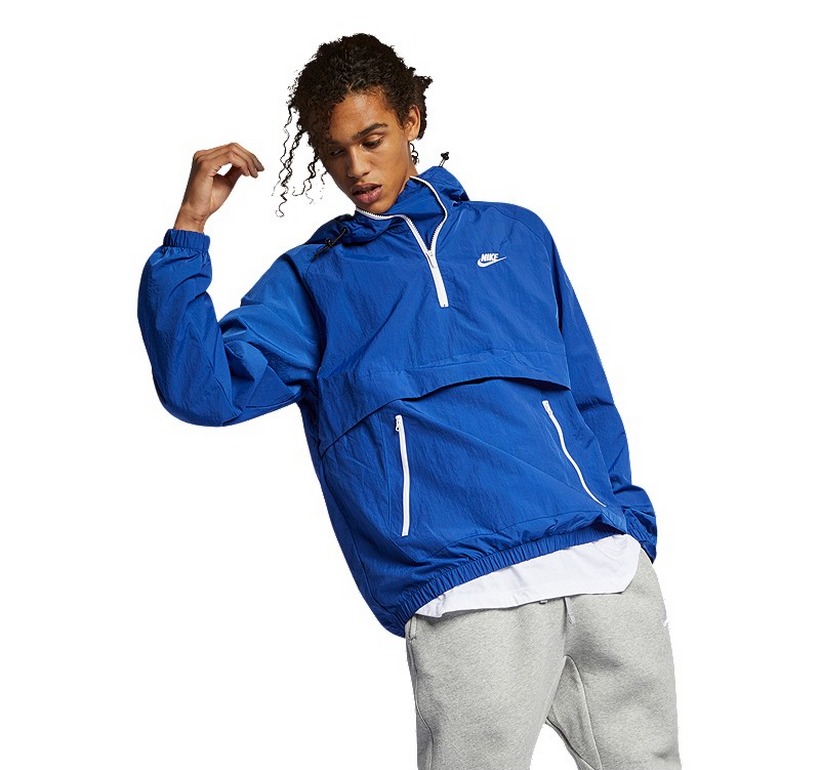 Nike. Альпинизм, спортивный туризм и прочий экстрим исключают боковые карманы, внедряют карман-кенгуру, заменяющий в походах тяжёлый рюкзак. Классические куртки марки с элементами футуристического стиля пошиты из рип-стопа. Особенность модели Найк в наличии тугих манжет на руках: сквозному ветру не пробраться сквозь подобную защиту.