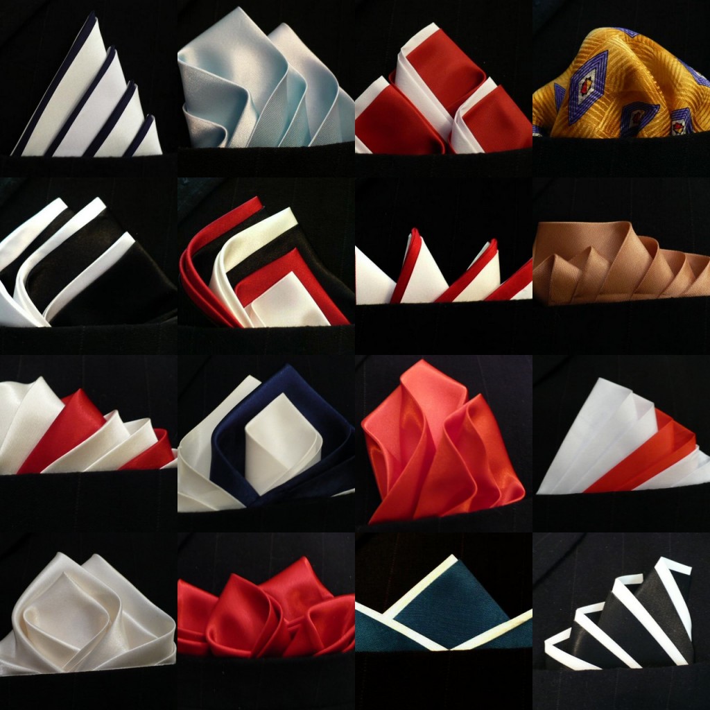 Точно сказать, какой размер правильный, сложно. Кроме того, что нагрудные карманы у разных моделей пиджаков и жилетов различаются, для платков из разных материалов тоже подходят различные размеры. Также вариант укладывания платка в карман влияет на выбор его размера.
