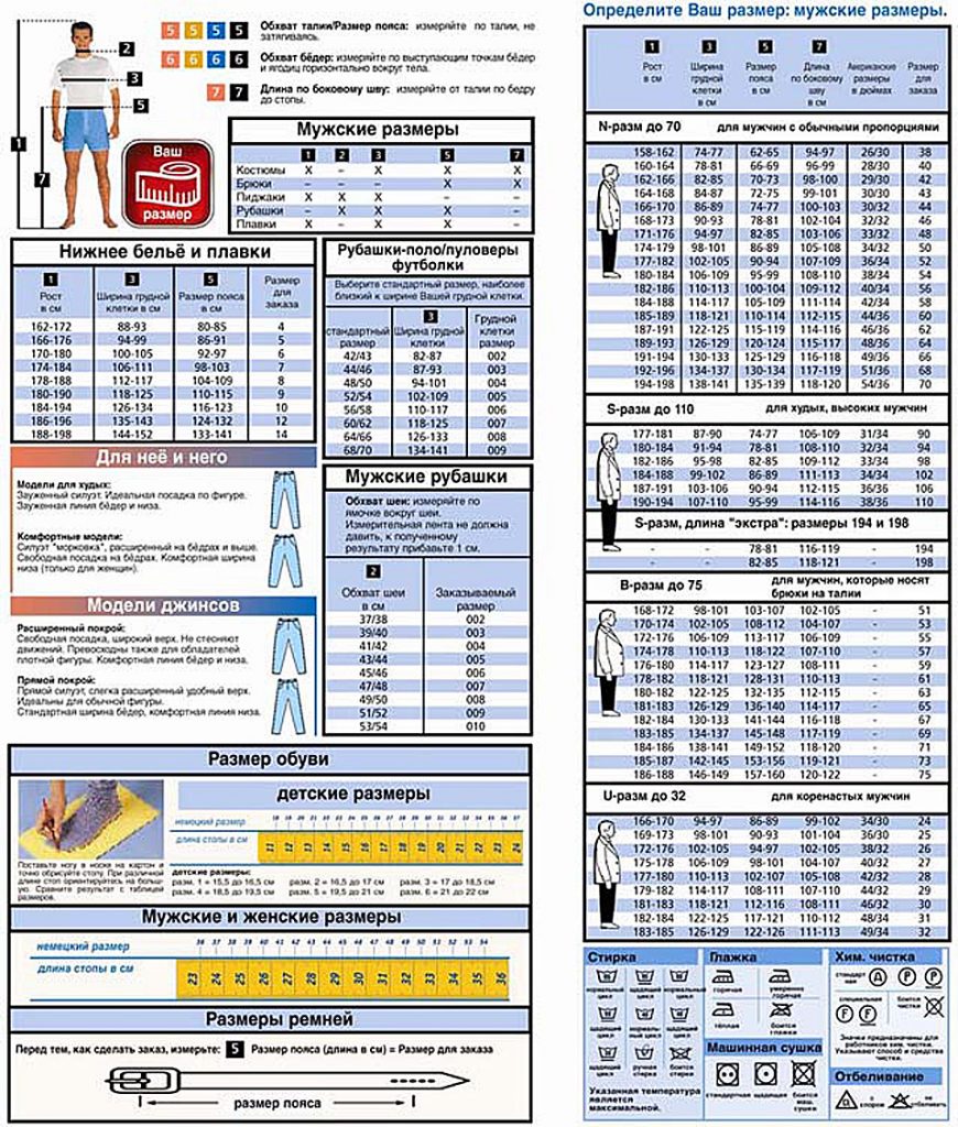 Для мужского нижнего белья разработано несколько систем, основанных на конкретных стандартах и оригинальной методике определения размера: