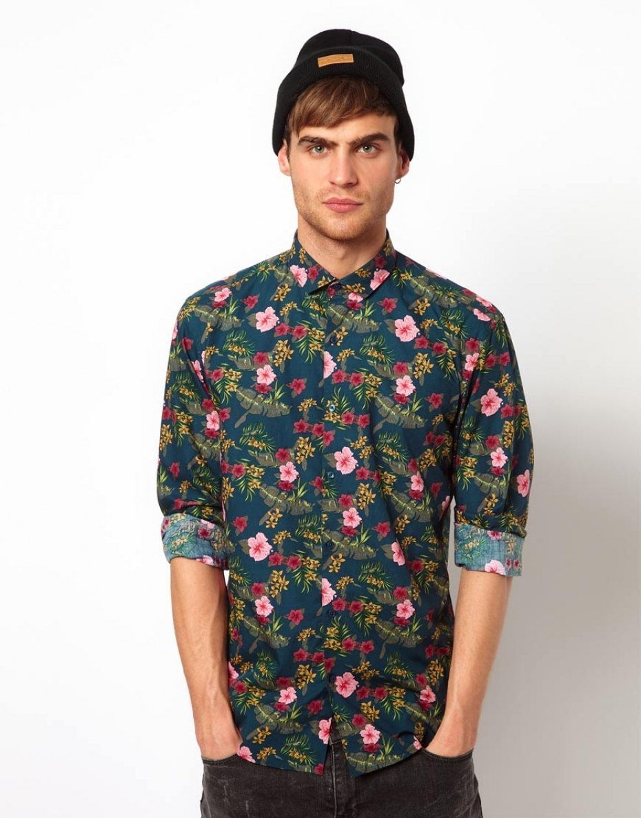 Грамотно включенный в дизайн рубашки модный яркий принт выглядит даже оригинальнее и интереснее однотонных собратьев.