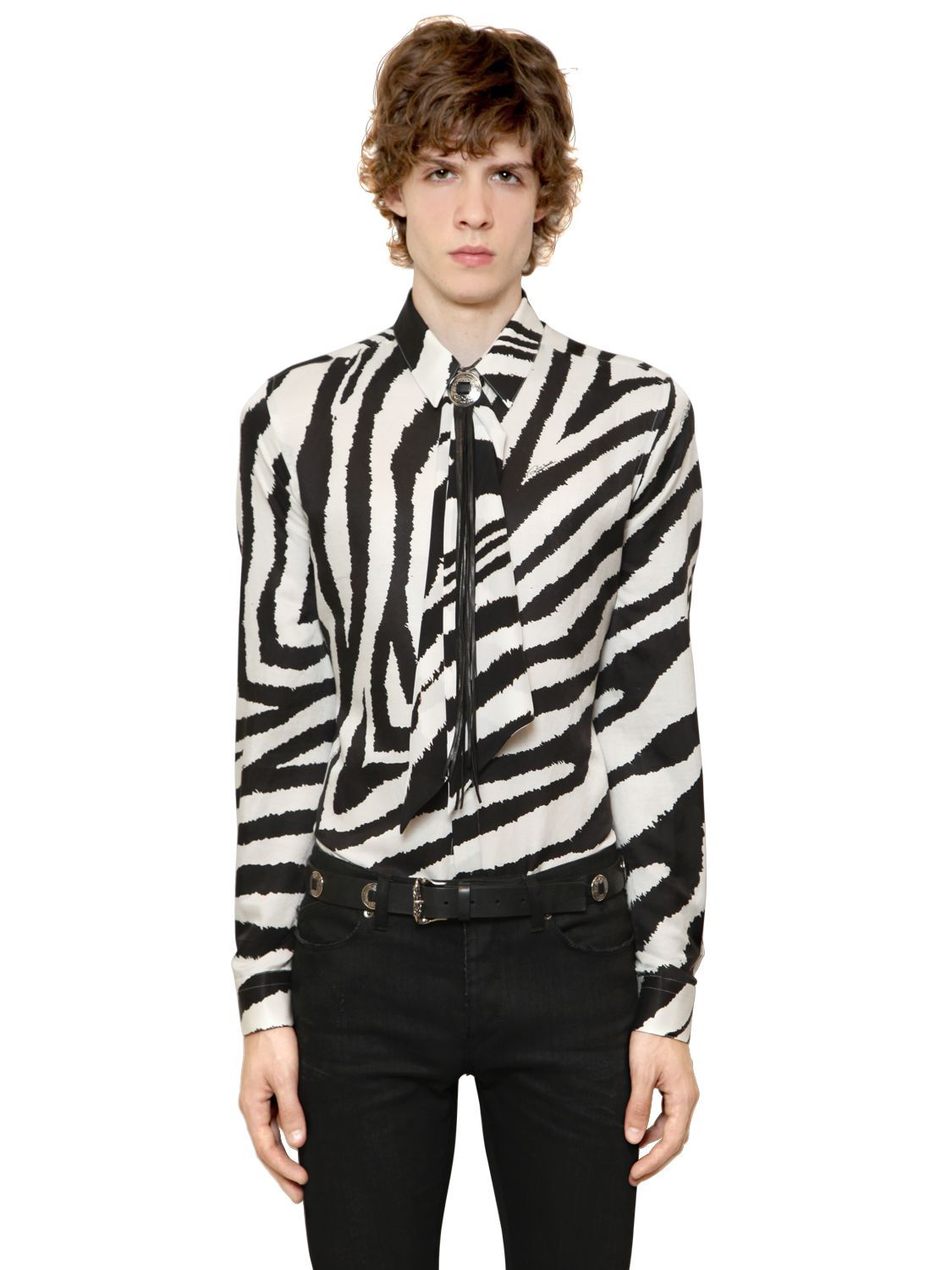 Носить сорочку с принтами нужно заправленной в брюки. Принты «зебра» или «леопард» – выбор самых смелый. Сочетание такой сорочки с однотонными брюками серого или коричневого цвета будет смотреться эффектно и стильно.