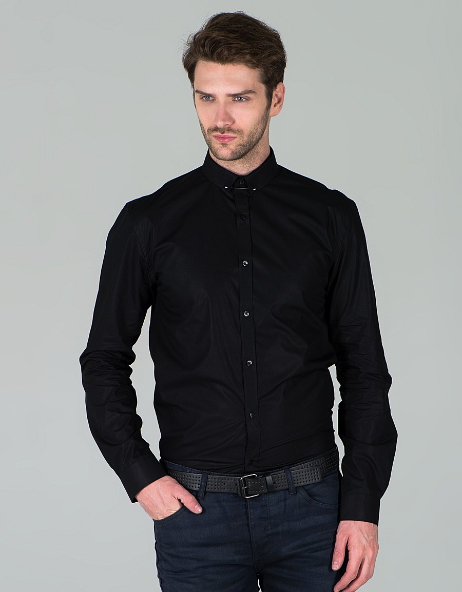 Это образ с серой рубашкой и синими брюками. Особенно неудачно смотрится образ с темными джинсами и грязно-серым верхом, дополненный тонким галстуком. Он сильно старит мужчину. При этом, если лук носит парень — он будет выглядеть моложаво. Старайтесь подбирать полуприталенный фасон рубашки. Возьмите вместо серого — джинсовый верх грязно-голубого тона, он выглядит более современно, чем классика.