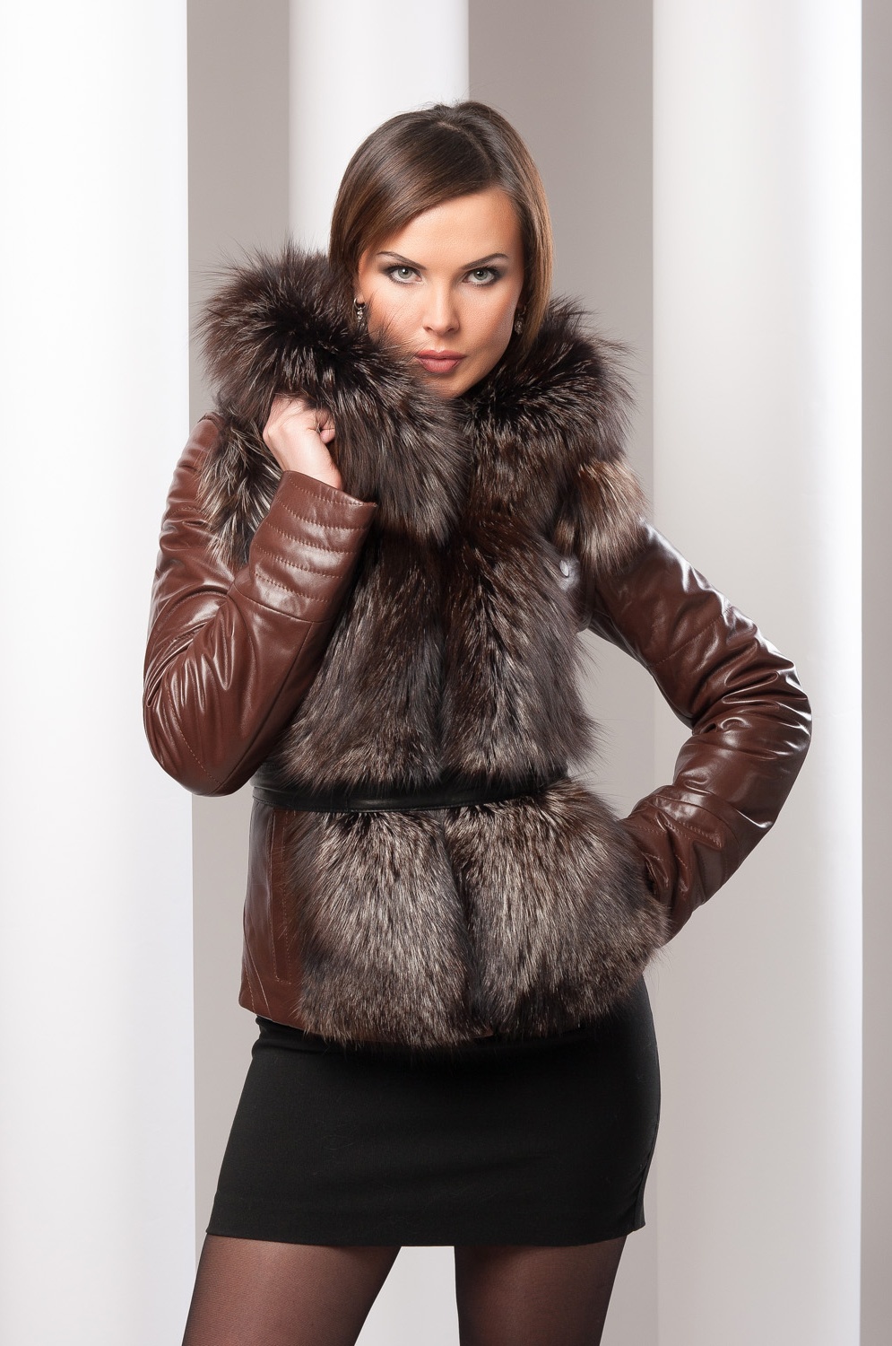 К изделиям высшей ценовой категории и классу премиум относят куртки из натуральной кожи или замши с отделкой из меха норки, песца или енота.