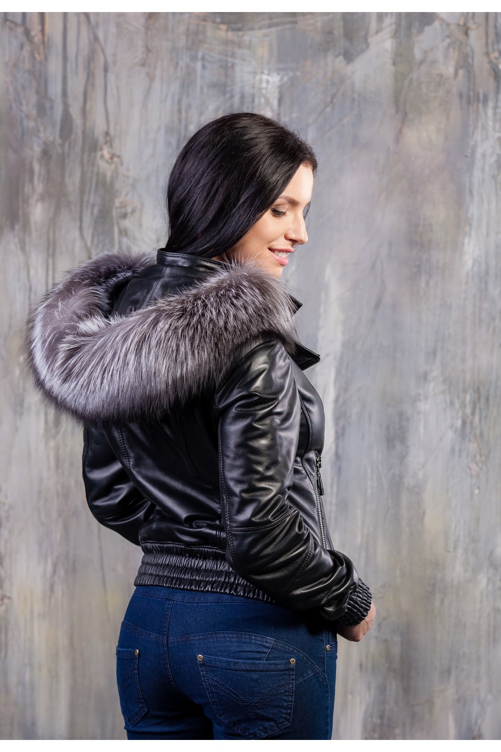 Изделие с капюшоном, оснащенным мехом актуально как снежной и холодной зимой, так и при переменчивой, сырой и ветреной погоде. Особенно стильно и оригинально смотрятся модели, спину и переднюю часть которых полностью покрывает мех. Это выглядит так, как будто на кожаную куртку надета меховая жилетка.